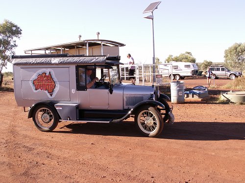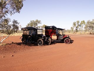 Well, we told them we were heading for the gulf via the bush and they were headed to the Daly in the N.T. and would be looking to camp at Camooweal the following night. Camooweal wasn't on our itinerary as we were going to go through Riversleigh to Lawn Hill. However, we couldn't pass up a chance to catch up with our mates for a fire and a drink or 3 by a waterhole. So the next morning we headed for Camooweal. Just as we were leaving the WW11 camp, a bunch of Model T Fords pulled in for water and a pit stop. They were all doing a lap of the map in their model T's and meeting up in Adelaide to celebrate the centenary of this icon of the motor industry. It just goes to show you that when you think you have seen it all.........