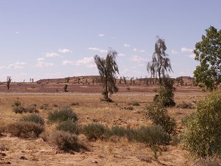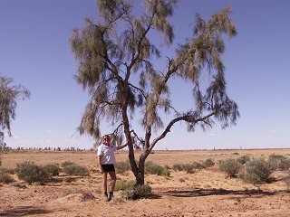 On the way from Birdsville to Boulia and further north, you will see these Waddi trees by the road side. There is an info sign just north of Birdsville where you can find out all about them. It appears that the nomadic aborigines used to carry a smoldering stick of Waddi to transport fire from place to place. This I have heard of before, but I didn't know that the Waddi is a very tough piece of timber. It seems that it has been known to damage saws and axes and when the wood is dried out, it is nearly impossible to drill. Did I mention that these stunted tough trees of the desert can live for a thousand years and that fence posts made from it can be nearly good as new after over a century of service in the dry desert sun.......wow....BIG WOW....it really does pay to travel slowly and stop frequently at the little info signs.