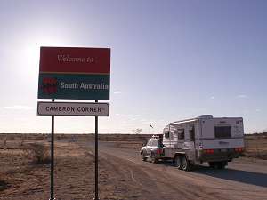 We made pretty good time along the road to "The Corner" and we had at least another 2 hours before the sun went down so a couple of pics was the go. At this place you can drive through a gate and leave NSW and cross into S.A. and then turn around and cross through another gate into QLD all in a minute or so.